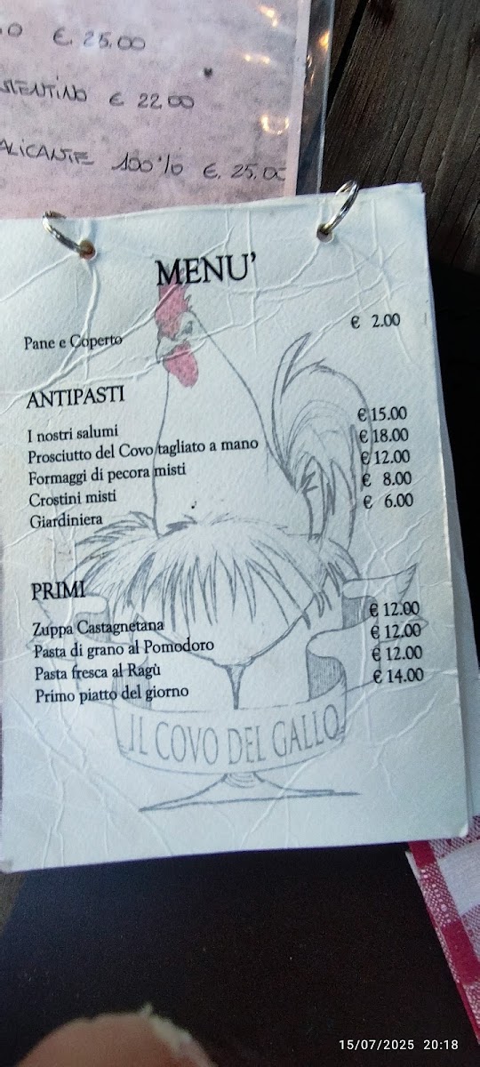 The menu at Il Covo Del Gallo offers a delightful mix of traditional Italian flavors with a focus on local ingredients. To start, the Tagliere Di Affettati Del Covo presents an exquisite selection of cured meats that perfectly complement the Tagliere Di Salumi Tipici, a plate brimming with typical local cured meats. For something truly comforting, the Zuppa Castagnetana is a flavorful chestnut soup, ideal for those looking for a taste of the region's rustic charm.